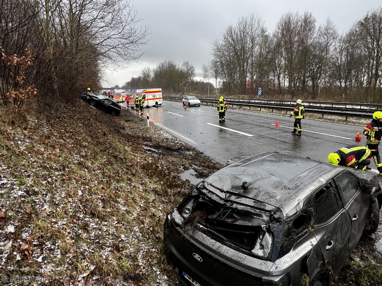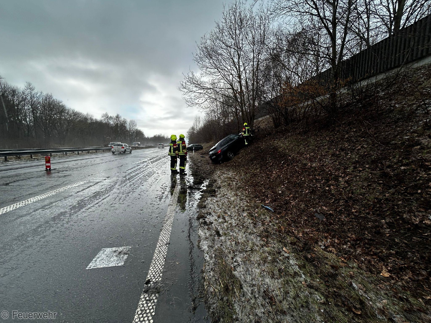 Am Dienstagnachmittag wurden die Feuerwehren Veenhusen und Neermoor zu einem Verkehrsunfall auf die Autobahn 31 alarmiert. Auf glatter Fahrbahn überschlug sich ein Fahrzeug, niemand wurde eingeklemmt. Die Batterien wurden durch uns abgeklemmt und die Fahrbahn gereinigt. Nach ca. einer Stunde konnte der Einsatz beendet werden