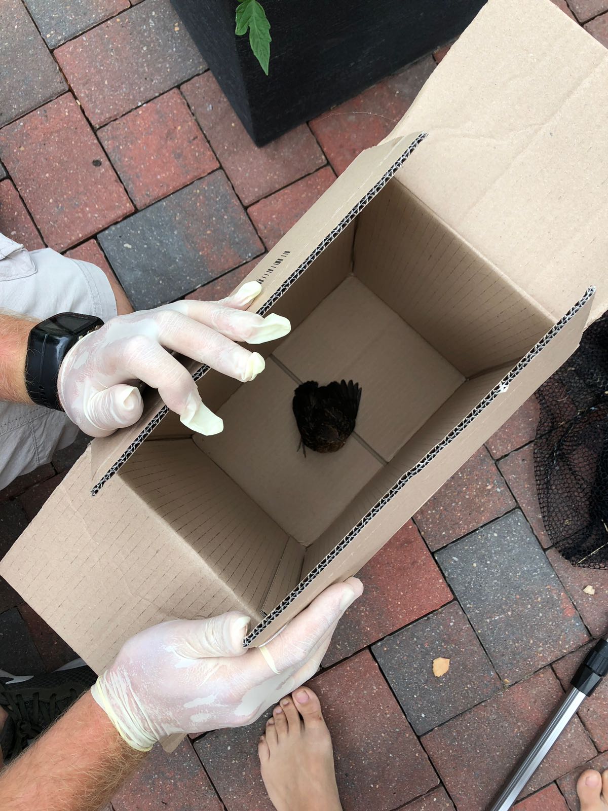 Vogel Küken aus Nest gefallen und zurück gesetzt.