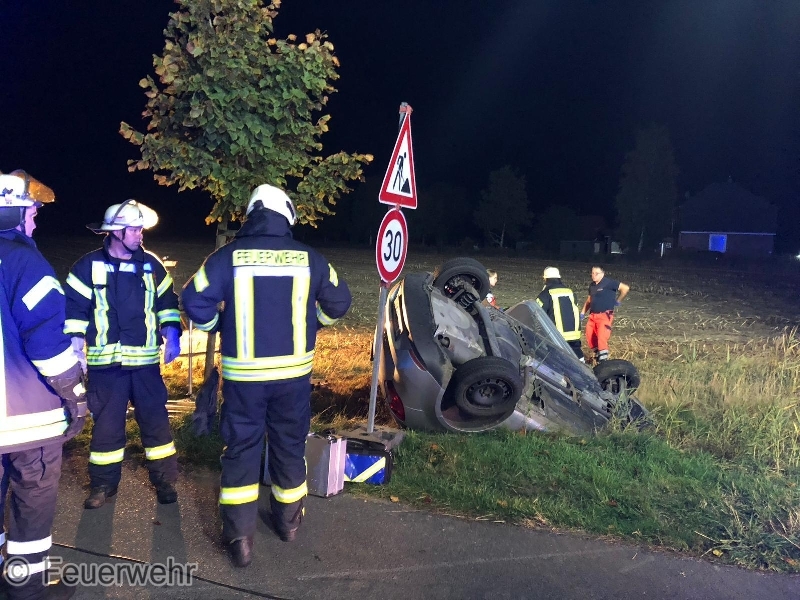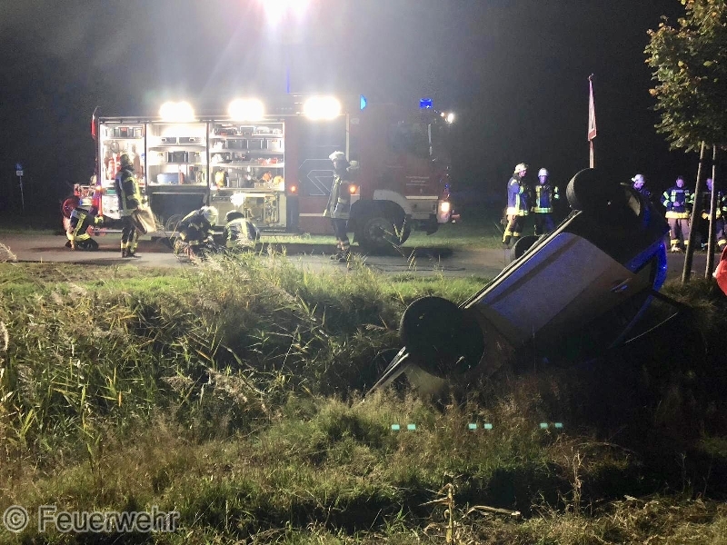 Neermoor - Zu einem Verkehrsunfall unter Alleinbeteiligung wurden die Beamten am heutigen Morgen gegen 04:30 im Conrebbersweg in Moormerland gerufen. Der 27-jährige aus Moormerland befuhr mit seinem Seat Ibiza den Conrebbersweg aus Richtung der Stettiner Straße in Richtung Kirchstraße. Kurz vor der Kirchstraße kam der Moormerländer aus bislang ungeklärter Ursache in der dortigen Rechtskurve nach links von der Fahrbahn ab. Hierbei überschlägt sich das Fahrzeug und kommt auf dem Dach liegend im Graben zum Stehen. Der Arm des Fahrers wird bei dem Überschlag zwischen Grabenuntergrund und Fahrzeug eingeklemmt. Die Feuerwehr konnte den Arm befreien. Über die Art und Schwere der Verletzung können zum jetzigen Zeitpunkt keine Angaben gemacht werden. Auch die Ermittlungen zur Verkehrsunfallursache stehen noch an. Der Moormerländer wurde zur ärztlichen Versorgung in ein örtliches Krankenhaus verbracht.