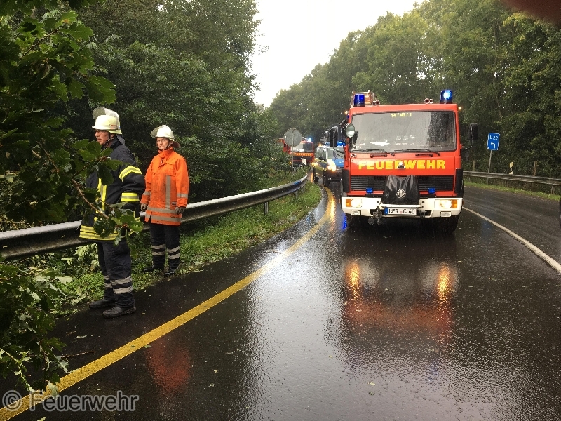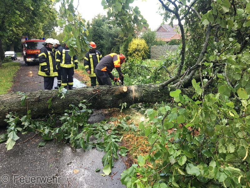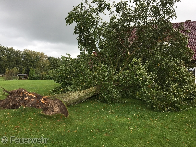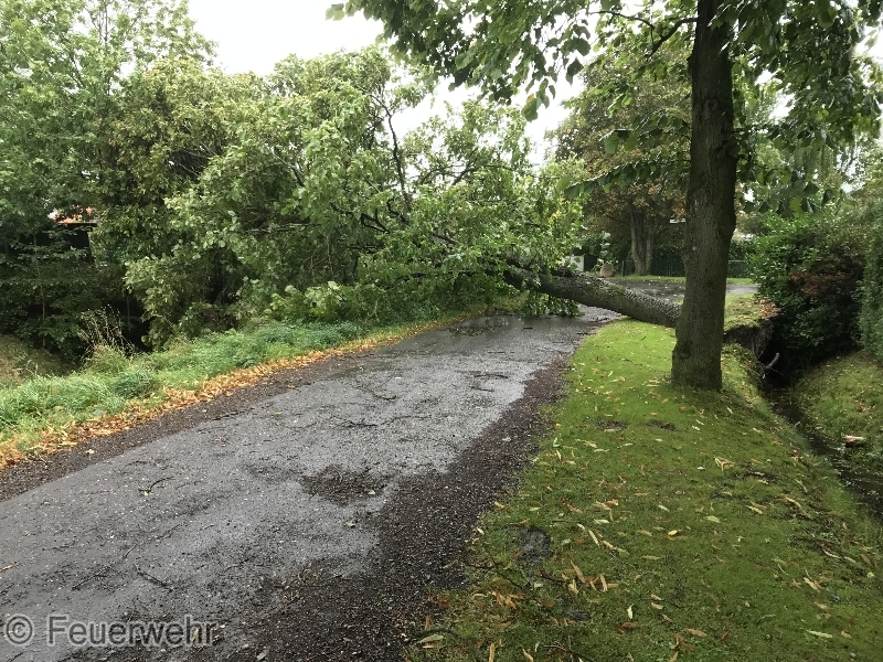 Aufgrund des starken Unwetters wurde die Feuerwehr Neermoor zu mehreren Sturmschäden alarmiert. Unter anderem auf die Auffahrt der Autobahn 31 und in die Burgstraße zu einem umgekippten Baum.