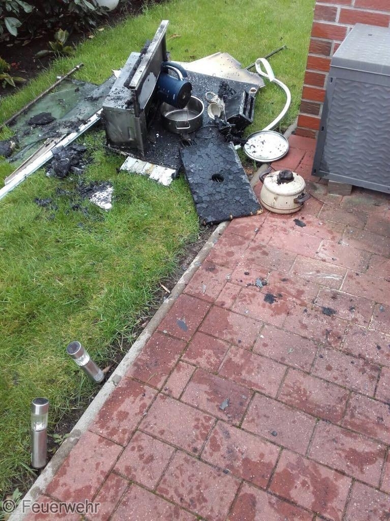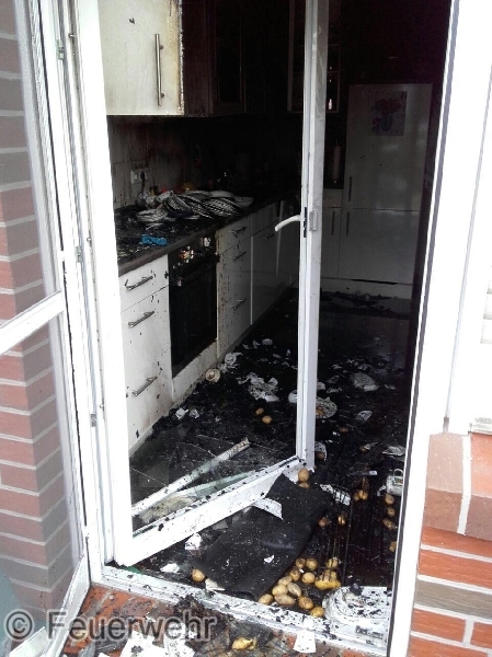 In der Küche war das Feuer vermutlich im Bereich des Herdes ausgebrochen. Der Brand hatte sich inzwischen auch auf die Abzugshaube ausgedehnt. Unter schwerem Atemschutz ging ein Trupp vor. Das Feuer war schnell unter Kontrolle gebracht. Die Überreste der Dunstabzugshaube wurden noch ins Freie gebracht.