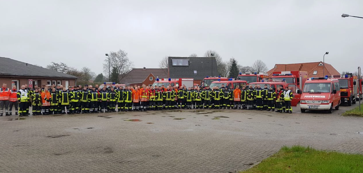 Zahlreiche Einsatzkräfte aus dem Bereich Wittmund und von der Bundeswehrfeuerwehr waren im Einsatz. Der Kräfteansatz reichte für die vielen kleinen Szenarien aber nicht aus, weswegen die Kreisfeuerwehrbereitschaft Nord des Landkreises Leer nachgefordert wurde.