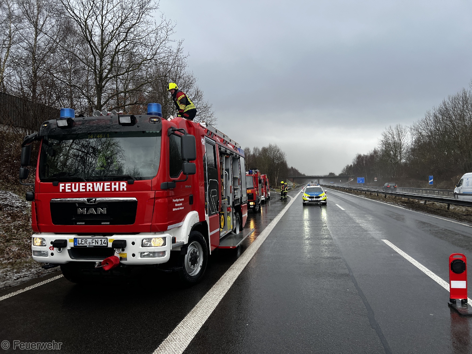 Am Dienstagnachmittag wurden die Feuerwehren Veenhusen und Neermoor zu einem Verkehrsunfall auf die Autobahn 31 alarmiert. Auf glatter Fahrbahn überschlug sich ein Fahrzeug, niemand wurde eingeklemmt. Die Batterien wurden durch uns abgeklemmt und die Fahrbahn gereinigt. Nach ca. einer Stunde konnte der Einsatz beendet werden